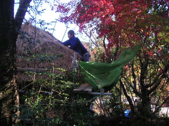 伺った当日は、その萱の葺き替え中でした(この専門の職人の方がおられるのですね。いまは少なくなりました)。