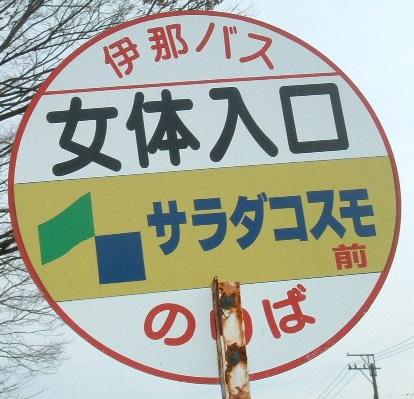 「トリビアの泉」でも放送されたという「女体入口」 長野県駒ヶ根市、駒ヶ根IC近くにあります。 現在の地名は赤穂となっているのですが・・・・。 これについては「女体入口」で検索エンジンかけてみてください。 (長野県駒ヶ根市)