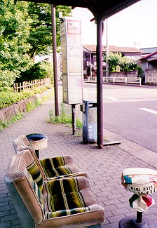 作品その81 バスストップになぜか室内用のソファがおかれています。屋根がついているからいいものの・・。 いったい誰が置いていったのだろう。丸椅子もある。 これはもしかして「万引き」ならぬ「万置き」かも知れない。 (神奈川県川崎市)