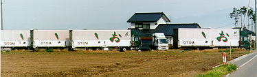 「おもと」という運送会社のトラック倉庫(?)が、サラダ街道沿いにありました。「お!」「お!」「お!」「お!」と並んでいるのは壮観です。