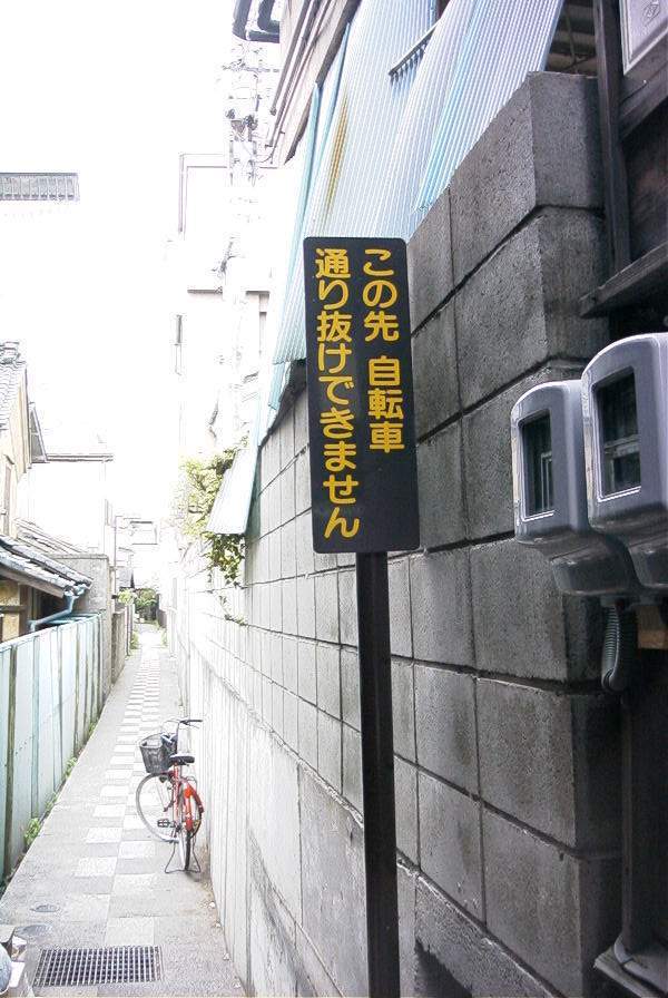 作品その91 この先がどうなっているのか、思わず行ってみたくなる看板です。 行ってみると、看板の意味が「なるほど!」とわかります。 因みに写っている自転車は、いつ行ってもそこにおいてあるのは、なぜ? (長野県松本市)